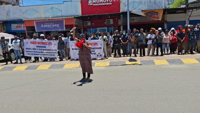 Sekretaris Koalisi Masyarakat Sipil, Rando, dalam orasinya menegaskan bahwa pihaknya mendukung penuh seluruh kebijakan Gubernur Papua definitif periode 2025–2030.